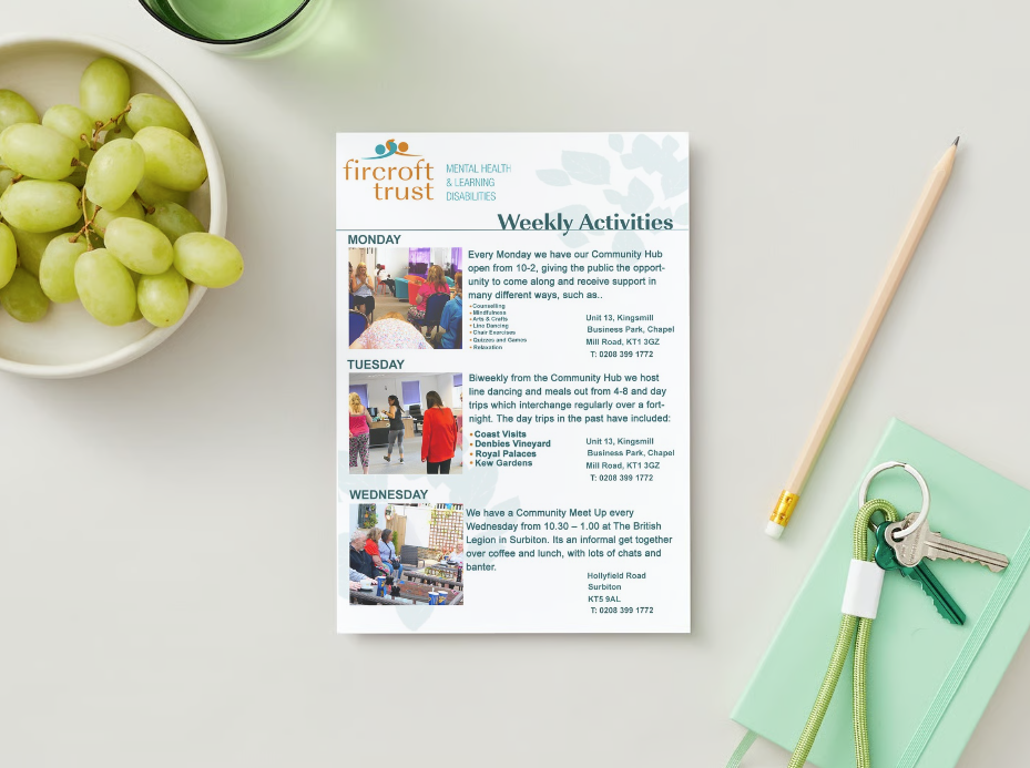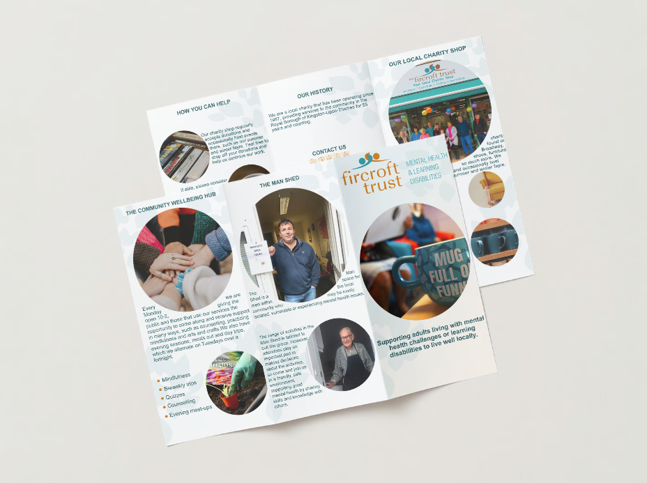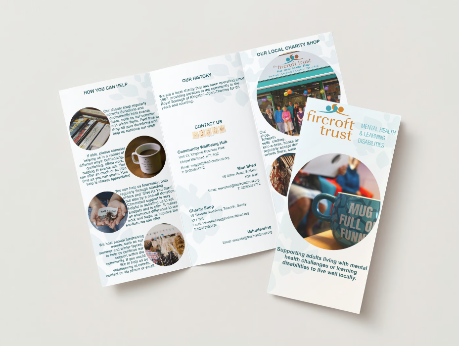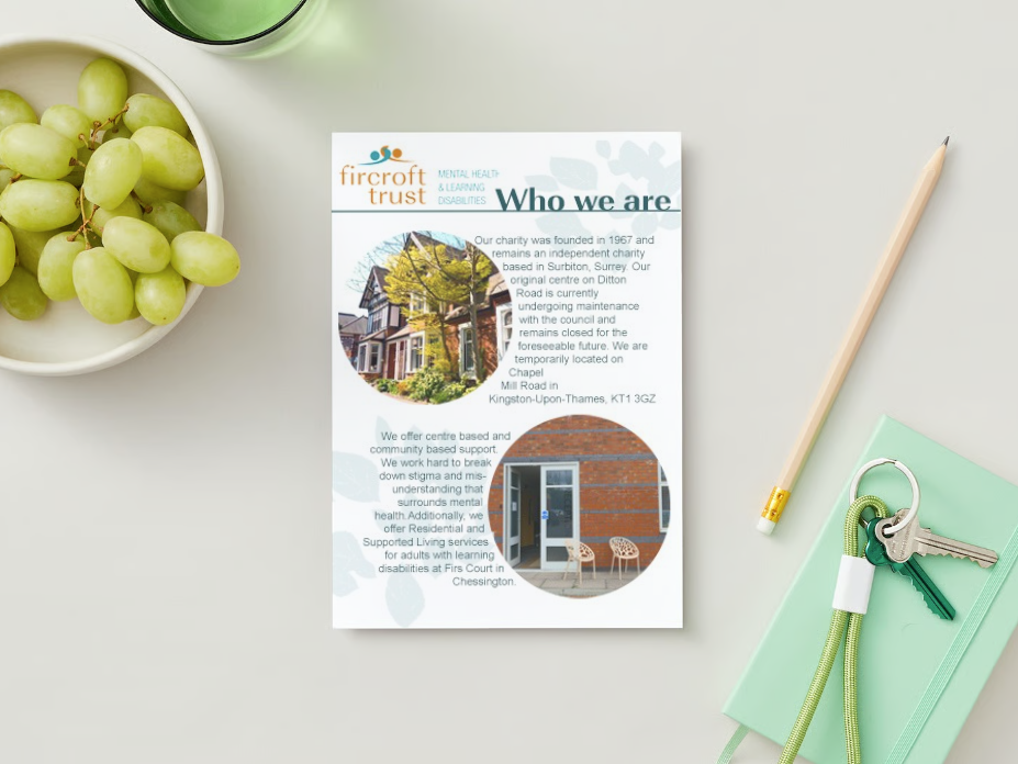 The Fircroft Trust is a charity based in Kingston-upon-Thames, with an aim of supporting people living in the community with learning disabilities, autism, and mental well-being issues. As part of my time volunteering with them, I assessed thei needs of their charity users and the organisation itself. Utilising my knowledge, I produced a range of print assets they could utilise to increase local outreach and awareness, as well as campaign for further funding and aid from the local council.
