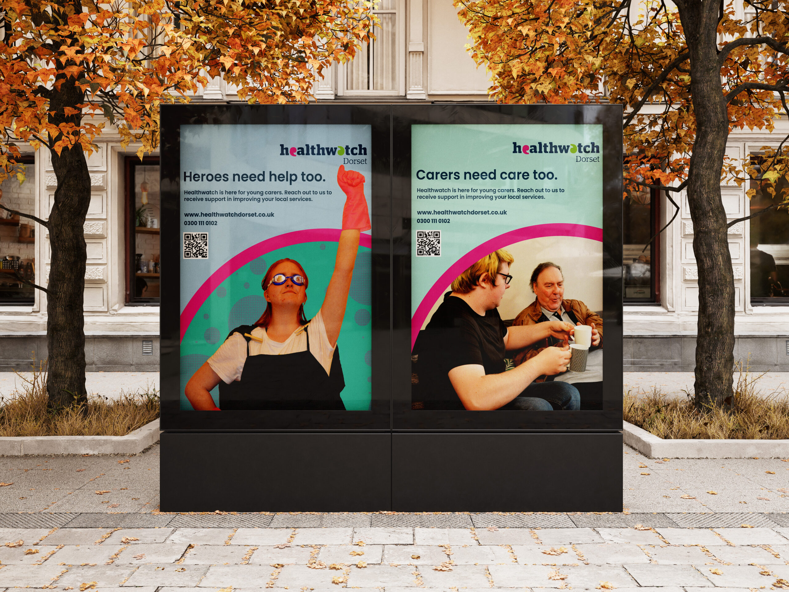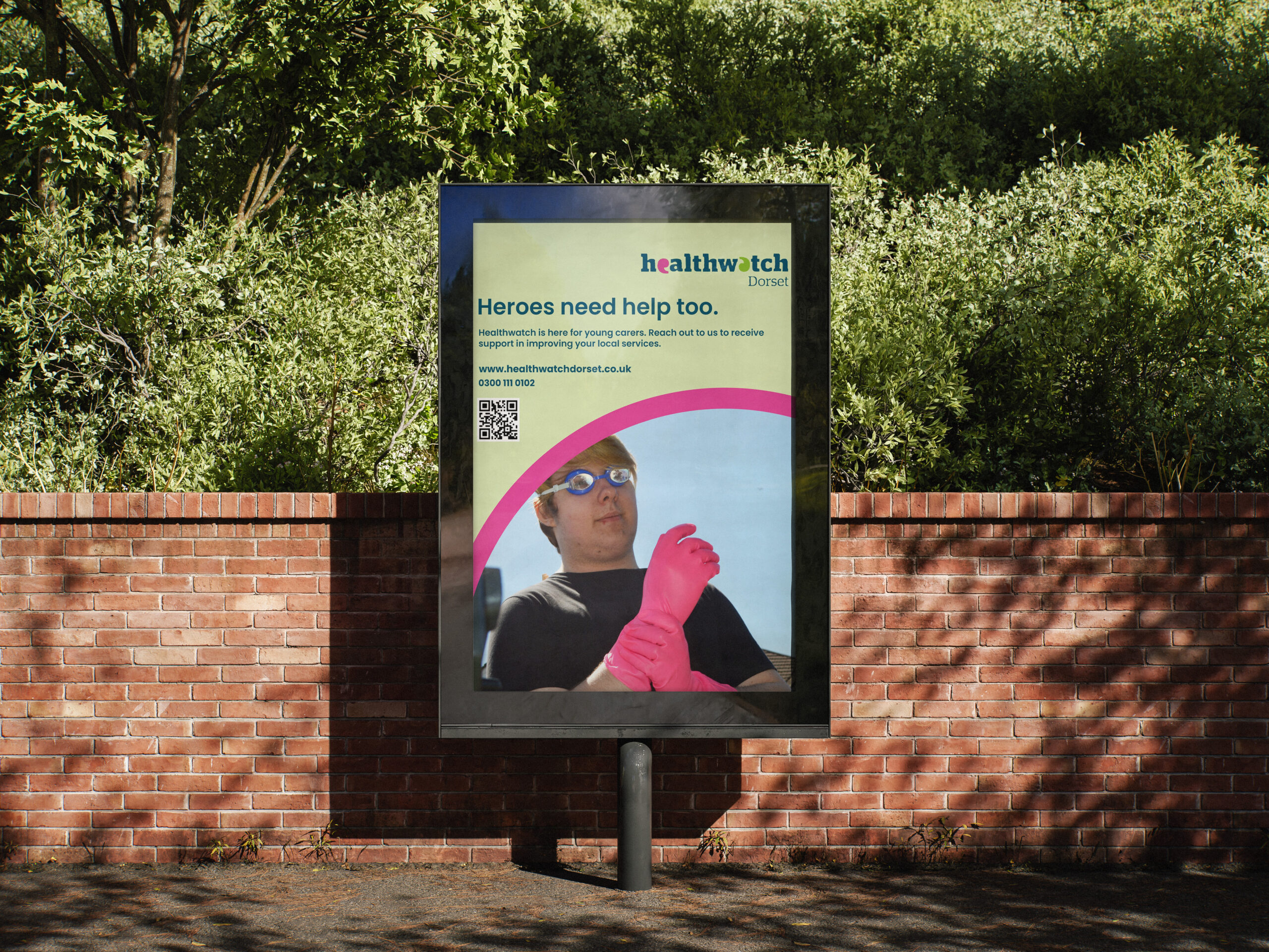 Healthwatch Dorset work with members of the public across Dorset, utilising their feedback on local health services to push for improved standards of care across the board. We were approached by them to produce a campaign that would increase young carers awareness of who they are and what they do. As part of this, we produced two videos and a range of posters for print and digital use, all based on our slogan and campaign “Heroes need Help too”/”Carers need Care too”.
