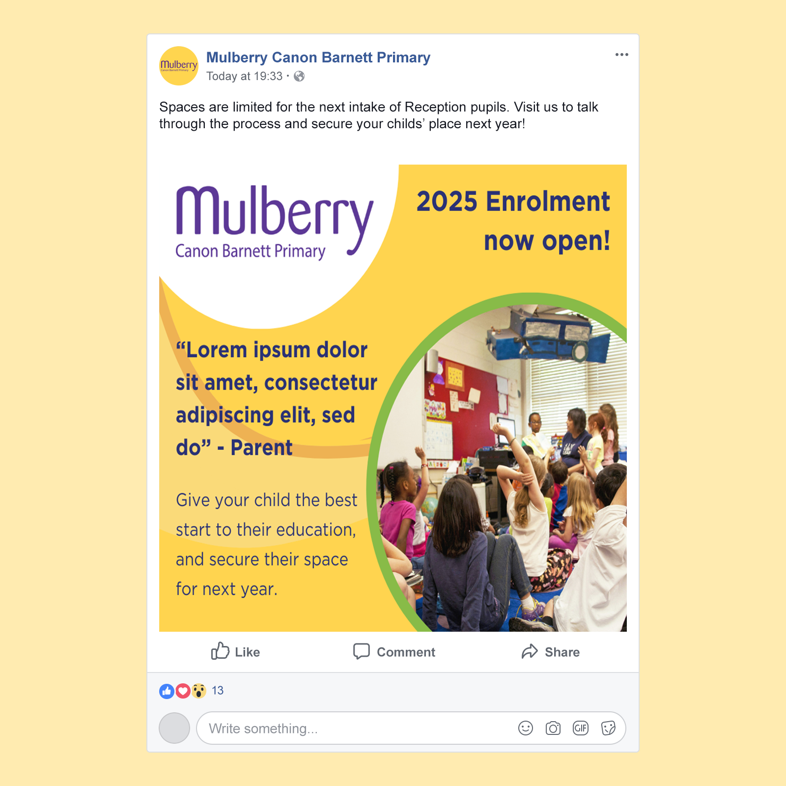 Provide content that will aid Mulberry Canon Barnett Primary with increasing enrolment.